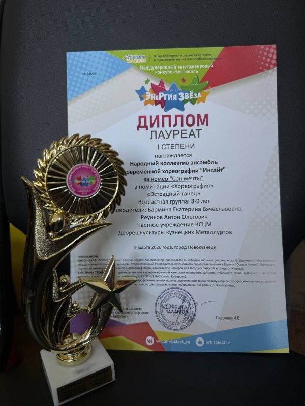 Поздравляем ансамбль современной хореографии «Инсайт» (группа «little size») со званием Лауреата 1 степени!